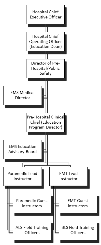 Link to the most recent detailed Pre-Hospital Services Organizational Chart (must be logged in to view this chart). This link includes individual names for both the operational and clinical departments. Education is a section of the clinical department.